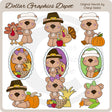 This collection includes adorable baby bears, pilgrim hats, turkeys, fall pumpkins, colorful autumn leaves, cornucopias filled with fruit, red apples, corn cobs, bunches of hay, and three coordinating scalloped tags. This set contains 9 graphics.