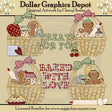 This one-of-a-kind collection is only available at Digital Craft Supplies. This set includes four baking baskets with two gingerbread men, two gingerbread ladies, measuring spoons, rolling pins, oven mitt, measuring cup, baking ingredients, spices, cookies, pie, and two word art graphics - "Treats For You" and "Baked With Love." This exclusive set contains 6 graphics.