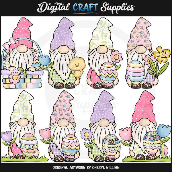 Here are some examples of what you can create using these "Big Eared Gnomes - Easter" graphics: