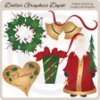 This collection includes Santa Claus with a Christmas tree and a gold star, Christmas bells with pretty red ribbon, a holly berry wreath, a wrapped Christmas present with pretty bow, and a Christmas heart with holly berry leaves and "Christmas" word art. This set contains 5 graphics.