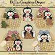 Here are some examples of what you can create using these "Christmas Basket Penguins" graphics:
