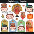 Here are some examples of what you can create using these "Hand Colored Thanksgiving Friends" graphics: