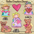 This collection includes beautifully hand painted Valentine girls, with pretty patchwork dresses, a heart princess crown, floral hat, and pretty hair bow, a Valentine heart cut-out, Valentine hearts with scalloped edges, a teddy bear sitting down with a bouquet of roses, a teddy bear with angel wings and a little heart, and a pretty pink Valentine heart. This set contains 6 graphics.