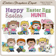 This collection includes adorable little Easter boys and girls, Easter baskets filled with Easter treats, painted Easter eggs, marshmallow bunnies, a bag of malted eggs, cute little Easter chicks, a Bible, pretty spring flowers, a duck, a lamb, a pretty floral cross, and two Easter word art graphics - "Happy Easter" and "Easter Egg Hunt." This set contains 10 graphics.