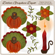 This collection includes two colorful turkeys, beautiful red and orange flowers, leafy vines, and a pretty candlestick with illuminating light. This set contains 7 graphics.