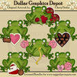 This collection includes six cute, little frogs, scalloped hearts, chocolate truffles, pretty red roses, heart shaped boxes of chocolate, pretty pink roses, a bow and heart shaped arrow, a Valentine card in an envelope, and a Conversation Heart with "True Love" word art. This set contains 6 graphics.