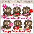 This one-of-a-kind collection is only available at Digital Craft Supplies. This collection includes adorable little Valentine owls with wrapped candies, lollipops, Conversation Hearts, chocolate frosted cupcakes, and three Valentine word art graphics - "Be Mine," "Whoo Whoo I Love You," and" Happy Valentine's Day." This exclusive set contains 9 graphics.