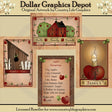 This collection includes four 5x7, country apple card fronts - one with a wooden birdhouse, a white picket fence, and "Apple Inn" word art, one with a saltbox house, apple trees, and "Have Faith - Treasure Family - Enjoy Friends" word art, one with an apple candle lamp with willow tree and "Family" word art, and one with an "Apple Dumplings" recipe. This set contains 4 greeting cards.