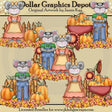 This collection includes adorable country mice boys, wearing blue jean overalls and green t-shirts, adorable little country mice girls, wearing pretty dresses and matching hair bows, wheel barrows filled with fall pumpkins, beautiful bright sunflowers, old picket fences, fall pumpkins, acorns, and lots of colorful autumn leaves. This set contains 5 graphics.