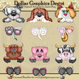 This collection includes six adorable dangling animals - a grey and white spotted puppy, a red and white spotted puppy, an orange and white cat, a brown cow, a pink pig, and a black and white spotted cow. This set contains 6 graphics.