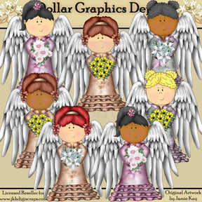 This collection includes seven beautiful angels, with stunning angel wings, beautiful satin floral dresses, and pretty flowers - sunflowers, cherry blossoms, and lilies with baby's breath. This set contains 7 graphics.