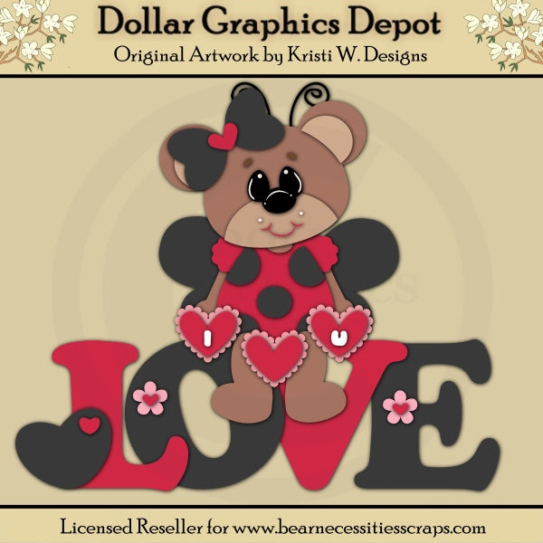 This one-of-a-kind collection is only available at Digital Craft Supplies. This exclusive set includes cutting files that can be used to create this adorable ladybug bear craft project (shown “finished” in preview) – a sweet little ladybug bear, scalloped Valentine hearts that spell: "I Love You," and "Love" word art.