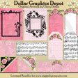 This large collection includes thirteen scrapbooking elements: one square journaling box - pink with white scrolls, two rectangular journaling boxes - one pink textured with black floral accents, and one pink with dark pink wording and black floral accents, six journaling tags - one pink textured with pink floral accents, one pink with white center, white scrolls, and pink floral accents, one pink with dark pink wording and floral accents, one pink with white scrolls and floral accents, and two white with black music notes, and four corners - black with white wording and pink floral accents, pink textured, pink with white scrolls, and pink with dark pink wording and floral accents. Please Note: The two large rectangular journaling boxes can also be used as 5x7 greeting card fronts, and any of the smaller rectangular boxes and journaling tags can also be used as gift tags or bag toppers. This set contains 13 graphics.
