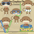 This collection includes five adorable sock monkeys with little heart cheeks, sun glasses, a swim ring, a mask and snorkel, swim sticks, and an inflatable swimming pool. This set contains 5 graphics.