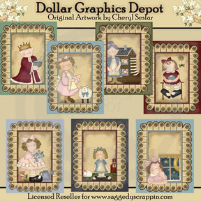 This collection includes seven 5x7, nursery rhyme card fronts, with pretty penny rug designs - Old King Cole, Little Bo Peep, There Was An Old Woman Who Lived In A Shoe, Little Miss Muffet, Mary Mary Quite Contrary, Mary Had a Little Lamb, and Twinkle Twinkle Little Star. This set contains 7 cards.