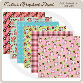 This collection includes six 12" x 12" Easter scrap papers. Patterns include: owls with Easter eggs and flowers, plaid, polka dot, and floral patterns. PLEASE NOTE: This set coordinates with the "Colorful Easter Owls - Clip Art" collection. This set contains 6 scrapbook papers.