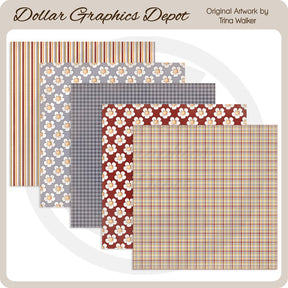 This collection includes five 12" x 12" Growing and Growing scrap papers. Patterns include: stripes, flowers (2), gingham, and plaid. PLEASE NOTE: This set coordinates with "Growing and Glowing - Clip Art" and "Growing and Glowing - Borders and Tags" collections. This set contains 5 scrapbook papers.