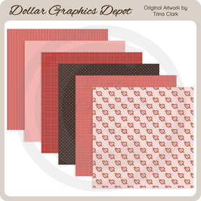 This collection includes six 12" x 12" valentine scrap papers. Patterns include: stripes, polka dots (2), plaid, gingham, and hearts with arrows. PLEASE NOTE: This set coordinates with the "My Feathered Valentine - Clip Art" collection. This set contains 6 scrapbook papers.