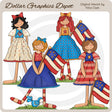 This collection includes four adorable Americana girls, with pretty patriotic dresses and matching hair bows, patches of grass, American flags, and a sweet little blue bird. This set contains 4 graphics.