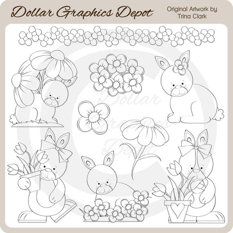 Garden Bunnies 1 - Digital Stamps