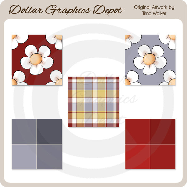 This collection includes five 2" x 2" Growing and Glowing background tiles. Patterns include flowers (2), plaid, and gingham. PLEASE NOTE: This set coordinates with "Growing and Glowing - Clip art," "Growing and Glowing - Scrap Papers," and "Growing and Glowing - Borders and Tags" collections. This set contains 5 background tile graphics.