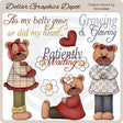 This collection includes adorable little expecting bears, in pretty pregnancy outfits, a heart, a flower, and three coordinating word art graphics - "As My Belly Grew, So Did My Heart," "Growing And Glowing," and "Patiently Waiting." PLEASE NOTE: This set coordinates with "Growing and Glowing - Scrap Papers" and "Growing and Glowing - Borders and Tags" collections. This set contains 8 graphics.
