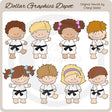 This collection includes adorable karate boys and girls with karate uniforms and belts. This set contains 8 graphics.