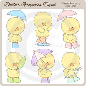 This one-of-a-kind collection is only available at Digital Craft Supplies. This set includes cute little baby ducks, with pastel rainboots and matching umbrellas, and a rain puddle. This exclusive set contains 6 graphics.