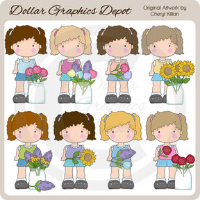 This collection includes eight adorable little girls, with mason jars and lots of colorful flowers for mom. This set contains 8 graphics.
