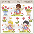 This collection includes pretty garden angels, patches of grass, red tulips, butterflies, watering cans, and flower pots filled with tulips. This set contains 10 graphics.