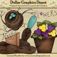 This collection includes a flower pot filled with colorful pansies, a mound of dirt with a clay flower pot, a hand shovel, a pretty bird's nest with robin eggs, and two word art graphics - "Flowers" and "Nest." This set contains 6 graphics.