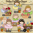 This collection includes six adorable little girls, wearing pretty patterned dresses and matching hair bows, wooden gardening totes filled with fresh cut flowers and garden gloves, clay flower pots filled with pretty tulips, bouquets of colorful roses, a woven basket filled with red roses, a potting bench with a garden sign, a straw hat, and little blue birds, and a wheel barrow filled with fresh cut flowers and little blue birds. This set contains 6 graphics.