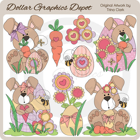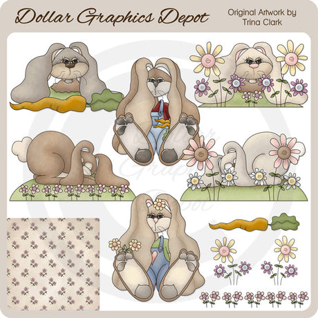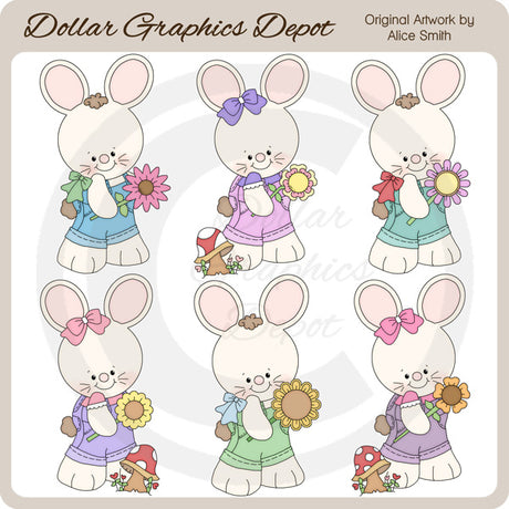Spring Bunnies and Flowers - Clip Art - *DCS Exclusive*