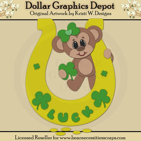 This one-of-a-kind collection is only available at Digital Craft Supplies. This exclusive set includes cutting files that can be used to create this adorable St. Patrick's Day craft project (shown “finished” in preview) – a cute little monkey with a green hair bow, gold coins, shamrocks, and a golden horseshoe with "Luck" word art.