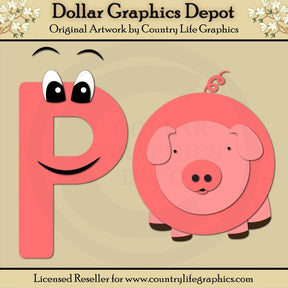 This collection includes cutting files that can be used to create this educational, alphabet letter craft project (shown “finished” in preview) – P is for Pig: the letter "P" and cute little piggy.