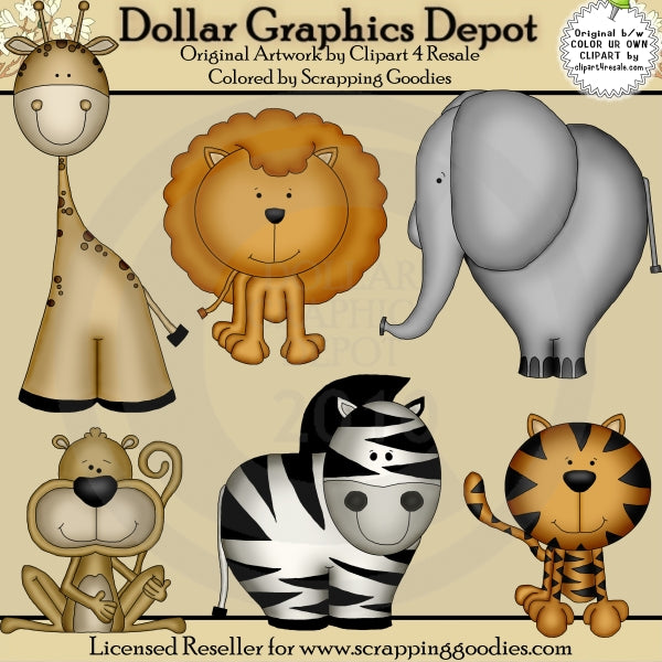 Esta colección incluye seis adorables animales del zoológico: una jirafa, un león, un elefante, un mono, una cebra y un tigre. Los colores incluyen: beige, marrón, naranja quemado, gris, carbón, tostado, caqui y blanco. Este conjunto contiene 6 gráficos.