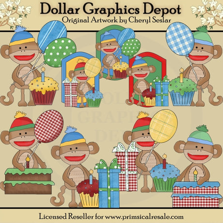 Precio normal $1.10 USDPrecio unitario /AgotadoMonos Calcetín Tontos - Cumpleañero - Clipart