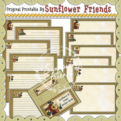 Precio normal $1.10 USDPrecio unitario /AgotadoTarjeta de recetas de girasol y cuervos... Juego de 12