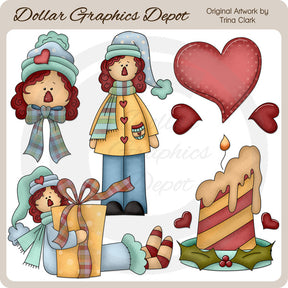 Esta colección incluye adorables muñecos de trapo navideños, un regalo de Navidad envuelto con un bonito lazo, una vela navideña y bonitos corazones rojos. Este conjunto contiene 5 gráficos.
