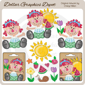 Este gran set incluye tres muñecas de trapo Summertime Annie: una Annie con un sol y una rodaja de sandía, una Annie con un bonito tulipán morado y una Annie que puedes personalizar con cualquiera de los elementos gráficos incluidos: un sol, una estrella y un corazón. , fresa, rodaja de sandía, un caracol, una flor amarilla, un tulipán morado o una rosa roja. Este juego también incluye dos etiquetas de regalo adicionales. Esta colección fue coloreada a mano, que es una técnica de coloración especial que realza el sombreado y la textura de los gráficos. Son muy bonitos... ¡y únicos! Este conjunto contiene 14 piezas (12 gráficos y 2 etiquetas imprimibles).