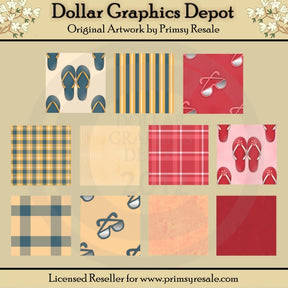 Esta colección incluye once mosaicos de fondo veraniego con chanclas, gafas de sol, estampados vintage a rayas, a cuadros y estilo grunge. TENGA EN CUENTA: Este conjunto coordina con la colección gráfica "Lilly and Landon Swimming" . Este conjunto contiene 11 gráficos de mosaicos de fondo.