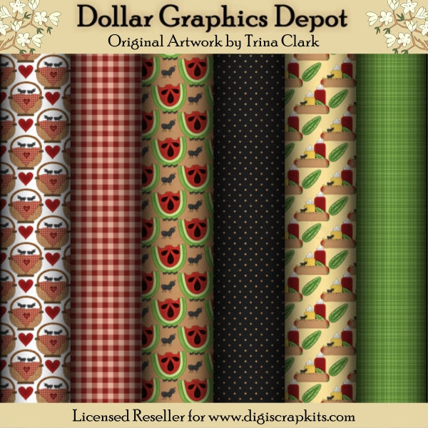 Esta colección incluye seis papeles de desecho "Picnic Ants" de 12" x 12". Los patrones incluyen: cestas de picnic con corazones y hormigas, cuadros vichy, rodajas de sandía con hormiguitas, lunares, salchichas, pepinillos, botellas de ketchup, botellas de mostaza y hormiguitas, y patrones de cuadros. TENGA EN CUENTA: Este conjunto coordina con la colección gráfica "Picnic Ants" . Este juego contiene 6 papeles para álbumes de recortes.
