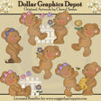 Esta colección incluye ocho adorables ositos primaverales, bonitos lazos, vallas blancas, pequeñas mariposas, bonitas flores, un simpático caracol, un abejorro y una colmena. Los colores incluyen: rosa, morado, amarillo, blanco, marrón y verde. Este conjunto contiene 6 gráficos.