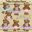 Esta colección incluye siete adorables bailarinas de peluche andrajosas, con tutús con volantes, diademas florales, bonitos lazos para el cabello y coronas de princesa, bonitos ramos de flores y un gráfico con la palabra "Dance". Los colores incluyen: rosa, aguamarina, lavanda, amarillo, marrón y negro. Este conjunto contiene 8 gráficos.