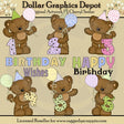 Esta colección incluye seis adorables ositos de peluche, con sombreros de fiesta a rayas, cuadros y lunares y globos de cumpleaños, números de cumpleaños coincidentes 1, 2, 3, 4, 5 y 6, y dos gráficos de palabras de cumpleaños: "Deseos de cumpleaños, " y feliz cumpleaños." Los colores incluyen: marrón, azul, verde, amarillo, negro, blanco, rosa y morado. Este conjunto contiene 8 gráficos.