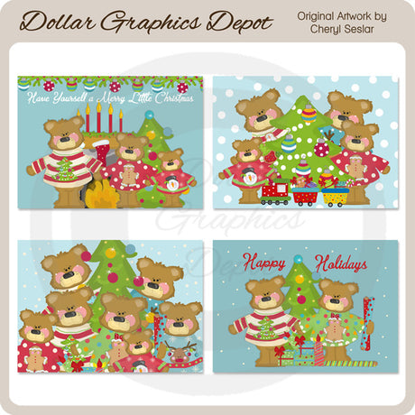 Osos navideños en casa - Clipart - Exclusivo de DCS