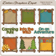 Esta colección incluye seis marcos de camping con bordes de ramas de árboles y fondos coloridos, hojas de otoño, bellotas, una rama de árbol, una fogata, un malvavisco en un palo, un S'more, pinos, un trozo de hierba, adoquines, un "Camp ", un banderín y tres gráficos artísticos con palabras para acampar: "Camping Fun", "Into The Wild" y "On An Adventure". Este conjunto contiene 9 gráficos.