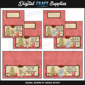 Esta colección única solo está disponible en Digital Craft Supplies. Esta colección incluye dos adornos para bolsas de gatos y gatitos de 3" x 4" (estos se ajustan a las bolsas para manualidades de 3" x 4"), dos adornos para bolsas para gatos y gatitos de 4" x 4" (estos se ajustan a las bolsas para manualidades de 4" x 6" ) y dos adornos para bolsas para gatos y gatitos de 7" x 5" (estos se ajustan a las bolsas para sándwiches de 6,5" x 5,8"). Los diseños incluyen: fondos rojos con copos de nieve blancos, adornos de hojas de bayas de acebo, marcos en la parte posterior (para que agregues tu propio texto), flores de pascua, lindos gatitos, dulces gatitos, una caja de golosinas para gatos, árboles de Navidad decorados y envoltorios. Regalos de Navidad. El texto incluye: "Para tu gato en Navidad" y "Para tu gatito en Navidad". Este conjunto exclusivo contiene 6 imprimibles individuales y 6 páginas "listas para imprimir" (no se muestran en la vista previa).