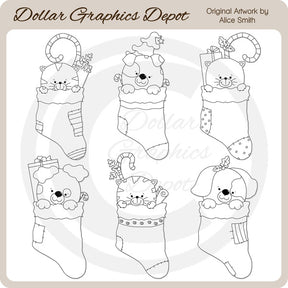 Mascotas de calcetín navideño - Sellos digitales - *Exclusivo de DCS*