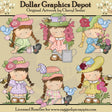 Esta colección incluye seis adorables niñas, que visten bonitos vestidos con estampados de lunares, cuadros vichy, cuadros y flores, y hermosos sombreros de flores y plumas, tiernos pájaros azules, pequeños abejorros, una regadera de metal, parches de hierba y muchos objetos bonitos. flores: tulipanes, gladiolos, geranios, flores de cerezo, lilas y malvarrosas. Este conjunto contiene 6 gráficos.